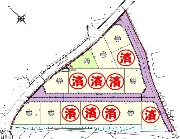 | 設備 | ガス:個別LP 水道:公営 雑排水:本下水(一部浄化槽対応) 汚水:本下水(区画9のみ合併式浄化槽対応) |