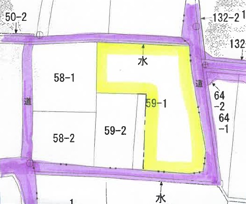 | 備考 | ・既存木造2階建住宅、倉庫、物置等あり。解体撤去を行い、整地にてからの引渡しとする。 ・売主側にて土地を分筆してからの引渡しとする。 ・売主側で既存給水管の布設替工事を行います。 ・接面市道に道路側溝無し。 ・市道内に上水道菅HIVPΦ100有り。 |
