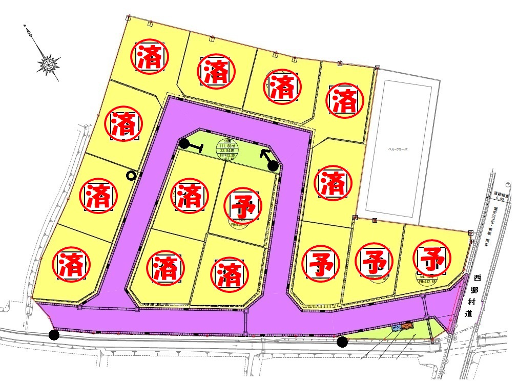 | 備考 | ・区画内に電柱及び支柱、支線がはいります ・地元町内会及び分譲地公共施設維持管理組合に加入要 ・農地転用許可に基づく建築条件付売買分譲地(区画6.7.8.9.10.14) ・都市計画法開発許可(福島県指令南建第655号)R7.6.11 |