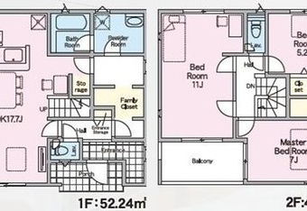 | 建物面積 | 1F:52.24㎡ 2F:48.60㎡ 計:100.84㎡(30.50坪) |