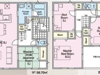 | 建物面積 | 1F:56.70㎡ 2F:48.60㎡ 計:105.30㎡(31.85坪) |