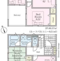 | 建物面積 | 1F:51.84㎡ 2F:46.57㎡ 計:98.41㎡(29.76坪) |