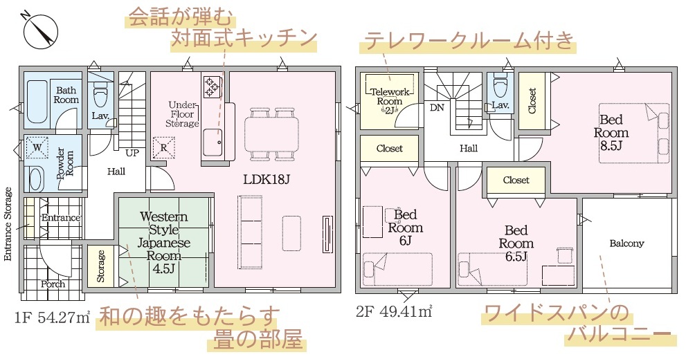 | 建物面積 | 1F:54.27㎡ 2F:49.41㎡ 計:103.68㎡(31.36坪) |