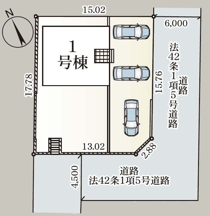 | 備考 | ・第R07SHC125896号 ・景観法、宅地造成工事規制区域、接道と段差有 ・東側道路・南側道路:法42条1項5号の位置指定道路は公道 ・駐車場3台(車種による) ・建物面積に別途バルコニー9.72㎡有 |