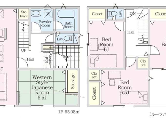 | 建物面積 | 1F:55.08㎡ 2F:48.60㎡ 計:103.68㎡(31.36坪) |